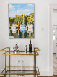 I drew inspiration from Beaufort’s coastal setting—using white, sand, brown, and shades of blue throughout the home.